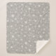 Este belo cobertor sherpa apresenta um padrão de tendência com estrelas brancas e flocos de neve sobre fundo falso prateado brilhante. Excelente de presentes de Natal e de inverno para os seus entes queridos!