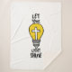 Este cobertor tem uma design que apresenta as palavras "Let Your Light Shine" (Deixe seu brilho claro) em uma fonte impressão com letras pretas, mostrando uma imagem de lâmpada amarela e um ícone de cruz branca no centro com um contorno preto nesse tema de citação de escritura baseado em fé. Este cobertor apresenta uma imagem vívida de um lado e o Sherpa mais suave disponível no reverso, feito de 100% de poliéster e impressão de vison com suporte ultra-soft sherpa.