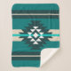 Padrão étnico boêmico asteca com formas geométricas em branco, bege e turquesa em fundo listrado