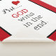 Não importa o que aconteça, Deus ganha no final. Uma mensagem alarmante para estes tempos de experimentação, esta design apresenta uma combinação de tipografia padrão e escrita enfeitada com um coração vermelho caprichoso. Acalme-se e saiba que está tudo bem!