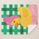 Um charmoso pato de borracha embrulhado em uma toalha rosa turbana senta-se em toalhas macia e confortáveis. O vibrante fundo verde de gingham adiciona um contraste lúcido aos tons pastéis quentes. Perfeito por adicionar um toque de chorona e relaxamento a qualquer espaço!