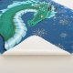 Retrato do perfil do dragão azul, verde e lacrimogênio com neve caindo por toda a parte. Rosa preto tribal.