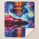 Cobertor Sherpa Dreamy ocean beach girl with moon and lights