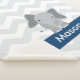 Um teste padrão cinzento moderno da viga dos azuis marinhos e uma ilustração bonito do elefante são caracterizados nesta cobertura do sherpa. Personalize facilmente com nome de uma criança.