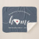 Mostre algum orgulho do estado doméstico com este cobertor giro azul de lançamento apresentando "home" em letras brancas de escrita de caligrafia com um mapa da silhueta do estado da Carolina do Sul em pé para a letra "O". Um dentro de ilustração do coração vermelho no mapa do estado completa o design; você pode mudar a posição do coração para sua cidade natal abrindo a ferramenta design e arrastando a forma do coração para seu lugar favorito. Personalize com a sua cidade natal, o nome da família e o ano estabelecidos para criar um presente perfeito e memorável de inauguração ou adição à sua nova casa.