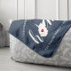 Mostre algum orgulho do estado doméstico com este cobertor giro azul de arremesso que apresenta "casa" em letras brancas de escrita de caligrafia com um mapa da silhueta do estado de West Virginia em pé para a letra "O". Um dentro de ilustração do coração vermelho no mapa do estado completa o design; você pode mudar a posição do coração para sua cidade natal abrindo a ferramenta design e arrastando a forma do coração para seu lugar favorito. Personalize com a sua cidade natal, o nome da família e o ano estabelecidos para criar um presente perfeito e memorável de inauguração ou adição à sua nova casa.
