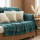 Ethnic Striped Throw Blanket in Ocean Blue with Ochre Tribal Patterns