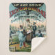 Circa 1885 - Anúncio para Ginger Ale com balão e cesto com tratadores pretos. Duas mulheres bebem Excelsior Ginger Ale, implicando que o carbonato ajuda o balão a subir. Imagem de duas mulheres elegantemente vestidas em vestidos finos e capuzes embarcando em passeio de balão de ar quente, uma fica dentro na cesta segurando um lenço de renda com um operador de balões moído com binóculos e um monóculo, a outra bebe gengibre de um copo quando ela começa a subir uma escada de corda para o artesanato; dois homens afro-americanos com garrafas gengibre frequentem o balão; uma grande multidão de pessoas assiste o espetáculo de bancas atrás de uma cerca branca de madeira pintada com slogans publicitários