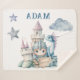 Celebrar o cavaleiro que vai ser nascer com este encantado e enfeitiçado conto de fadas Sherpa Blanket em cores azuis com castelo, dragão e nuvens para o seu Chá de fraldas do Little Knight Boy
