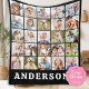 Cobertor Sherpa Family 25 Photo Collage Personalized Name Black