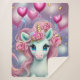 Cobertor Sherpa Fantasy White Baby Unicorn com Corações Rosa