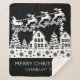 Feliz Papais noeis de Natal Flocos de Neve de inverno Nome Personalizado Sherpa Blanket mostra Papai Noel com sua rena voando sobre as casas cobertas de neve com o texto "Feliz Natal" em um roteiro de caligrafia moderno e seu nome personalizado em branco sobre fundo preto. Personalize editando o texto nas caixas de texto fornecidas. Perfeito para presentes de Natal. Elaborado por ©Evco Holidays www.zazzle.com/store/evcoholidays