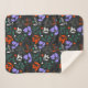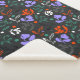A "Flora Crepúscula" apresenta flores vibrantes e arrojadas em roxo, laranja e verde, colocadas sobre um fundo escuro. Este padrão marcante adiciona um toque de elegância e mistério, perfeito para qualquer espaço moderno.
