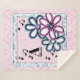 Uma flor branca e design de borra que você pode personalizar com o nome e o nome iniciais. As grandes flores neon são proeminentes com notas musicais negras e flores azuis no fundo. Este belo cobertor pode pendurar em uma escada de cobertor, ser usado em um carrinho, carro, ou em um piquenique. Quente, felpudo, divertido e funcional!