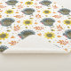 Um padrão aquoso de perus de cinza azul, girassóis e bolotas ouros, corações e folhas cor de laranja contra fundo branco