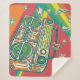 Cobertor Sherpa Funky Boom Box Design Colorida
