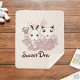O design do produto apresenta um belo coelho e gatinho com flores cor-de-rosa. Este desenho animado bonito faz um cobertor Sherpa bonito e único com texto personalizado para crianças - Doces Sonhos.