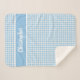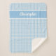 Personalize este cobertor de velo sherpa com um nome para um bebê. Projetado em um gingham azul e branco, xadrez, padrão verificado. Ideia do presente