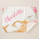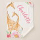 Um cobertor de bebê do sherpa de girafa adorável para uma menina. Design apresenta uma girafa giratória, mãe e bebê, com lindas flores rosa. Personalize facilmente com um nome usando os campos de modelo on-line.