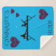 Gymnastics Blue Sherpa cobertor com ginasta e corações roxos. Nome personalizado.
