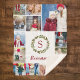 Crie um cobertor de fotos exclusivo personalizado com seu nome de família monograma e 12 fotos especiais. Este bonito design de Natal apresenta uma camada floral de verde e bagas sagradas à volta do seu monograma inicial. Adicione seu nome ou outro texto personalizado em uma fonte de script na moda abaixo. O modelo de colagem de fotos tem espaço para adicionar 12 fotos diferentes. Uma maneira perfeita de capturar memórias do ano passado ou preencher cada quadro com fotos dos netos como um presente de feriado único para vovó e vovô! Use as ferramentas de design para escolher qualquer cor de fundo, editar as fontes de texto e as cores ou carregar mais fotos para fazer seu próprio design personalizado.