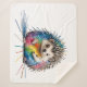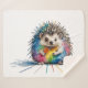 Ein freundlicher Igel in bunten Farben, eine kindliche Zeichnung eines Igels, mit Tusche und Kreide, gekleckst und geschmierte ist die Farben als Stil und Effekt des lustigen Bildes.