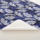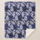 Folhas brancas de palma sobre fundo azul-indigo, em camadas com mais frondes de palma azuis.