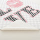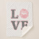 Este design apresenta um conjunto pastel de lábios e AMOR em um padrão listrado preto e branco.
