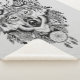 Características deste design um retrato de um lobo que veste penas tribais e um dreamcatcher.