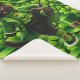 Snuggle up with a bit of Irish luck with this festive Saint Patrick's Day throw blanket this cozy design features a charming black cat dressed as a dancing leprechaun in a classic green buckled suit and hat the all over print background is filled with a lush pattern of lucky four leaf clovers and vibrant leprechaun top hats making it the perfect home accessory for March 17