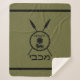 Uma representação "subjugada" militar negra do escudo de um Macabcabee e de duas lanças. O escudo é enfeitado por um leão e o texto lendo "Yisrael" (Israel) no alfabeto paleohebraico. O texto hebraico moderno que lê "Maccabee" também aparece. Os Macabeus eram rebeldes judeus que libertaram Judeia do jugo do Império Seleúcio. Chanukkah não é apenas um festival de inverno-médio com velas e iguarias fritas, ela celebra uma vitória militar, e garante a liberdade religiosa, sobre o Império Seleúcio. Além disso, a revolta foi uma guerra civil envolvendo aqueles judeus que eram leais ao G-d e aqueles que tinham adotado o Hellenismo dos Seleucids.