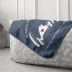 Mostre algum orgulho de casa com este bonitinho cobertor azul de arremesso com "casa" em letras brancas de escrita caligráfica com um mapa da silhueta do Vineyard de Martha em pé para a letra "O". Um dentro de ilustração do coração vermelho no mapa do estado completa o design; você pode mudar a posição do coração para sua cidade natal abrindo a ferramenta design e arrastando a forma do coração para seu lugar favorito. Personalize com a sua cidade natal, o nome da família e o ano estabelecidos para criar um presente perfeito e memorável de inauguração ou adição à sua nova casa.