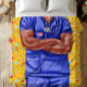 Se você está procurando um presente perfeito para um bonito trabalhador negro no campo médico, um cobertor aconchegante adiciona um toque decorativo e quente a uma sala e é um item fundamental para qualquer casa. Este cobertor vem com uma ilustração divertida de um bonito enfermeiro ou médico negro mostrando sua parte superior em esfregões roxos brilhantes, com seus braços cruzados e um estetoscópio escorregado ao redor do pescoço e um coração no bolso. O pano de fundo apresenta vários instrumentos médicos contra um fundo amarelo vibrante. Você pode personalizar facilmente esta imagem divertida com o nome do seu assistente médico certificado favorito, CNA, MD, RN, dentista ou enfermeiro escolar. Perfeito para dar este feriado, seja para o Natal, Hanukkah, Kwanzaa, um aniversário, ou um obrigado sincero a um médico ou enfermeiro negro favorito.