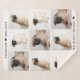 Um belo e acolhedor cobertor personalizado do memorial de animais de estimação para honrar a memória de um amado membro da família peludo. O design moderno e simples inclui uma coleção de fotos de nove (9) fotos em forma quadrada com o nome do seu cão, o seu tempo de vida ou o ano em que faleceram, detalhes do design cardíaco e uma citação personalizada - a citação padrão é "Para sempre em nossos corações". As cores brancas e pretas neutras neutras podem ser personalizadas.