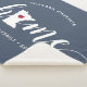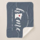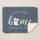 Mostre algum orgulho do estado doméstico com este cobertor giro azul de lançamento apresentando "casa" em letras brancas de escrita de caligrafia com um mapa da silhueta do estado de Minnesota em pé para a letra "O". Um dentro de ilustração do coração vermelho no mapa do estado completa o design; você pode mudar a posição do coração para sua cidade natal abrindo a ferramenta design e arrastando a forma do coração para seu lugar favorito. Personalize com a sua cidade natal, o nome da família e o ano estabelecidos para criar um presente perfeito e memorável de inauguração ou adição à sua nova casa.