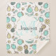Um cobertor com um estilo de desenho de linha de padrão de fruta bonito. Cor verde-clara e amarela. Um design de verão divertido. Um círculo branco colocado sobre o topo com seu nome e dentro inicial monograma.