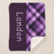 Um cobertor de sherpa monograma de pequena dimensão, com um belo padrão diagonal de xadrez design em roxo de ameixa. Crie o presente personalizado perfeito clicando no botão "personalizado" para adicionar um nome ou mensagem personalizada no campo modelo fornecido. Selecione o link "clique para personalizar mais" para alterar a fonte, o tamanho do texto e muito mais.