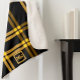 Este cobertor de tartan de xadrez apresenta um design preto e ouro, preto e clássico, criando uma aparência quente e na moda. As linhas de interseção formam um padrão de tartan semelhante à rede com uma textura rica que adiciona sofisticação. Uma caixa de monograma personalizável é posicionada na parte inferior, permitindo que as iniciais (atualmente "MW") sejam substituídas por suas próprias iniciais, fazer-as como um presente ponderado ou um acessório doméstico personalizado.