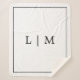 Simples cobertor sherpa com um design moderno, mas elegante, com seu monograma de duas letras cercado por uma fina borda em preto clássico e branco. Este cobertor chic e na moda sherpa faz um presente de casamento excelente para um casal minimalista.