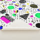 Step back into the electric energy of the 1980s with this vibrant Memphis Group-inspired geometric pattern. This design features a "maximalist" explosion of shapes, including floating spheres, jagged lightning bolts, and abstract rectangles, all layered over a classic black-and-white stipple dot background. The high-contrast palette of neon pink, electric blue, radioactive green, and bold yellow creates a rhythmic, high-energy visual experience. Perfect for those who love retro-futurism, 90s nostalgia, and bold streetwear, this seamless artwork captures the playful spirit of post-modern design. Whether you are looking to make a statement with a bold t-shirt or add a pop of vintage color to your living space, this "Geometric Chaos" print brings a timeless, avant-garde vibe to any product.