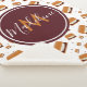 Um cobertor de sherpa monograma com um padrão de "mores" sorridentes num fundo branco. Por cima desse padrão fofo está uma combinação de nome e monograma que pode ser personalizada. Comida Bonita Monograma Nome Sherpa Blanket Sweetsham Comida Art | ©Melissa Patton — Artista/Ilustrator