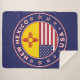 Crachá do Estado do Novo México com bandeira do Estado do Novo México e bandeira dos EUA cores, forma arredondada. Emblema do Estado do Novo México. Selo do Estado do Novo México. Coleção dos Estados Unidos.