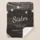 Madeira marrom-escura-escura-escura de Oak Ridge, Jars Mason cintilante, e Design de Luzes de Cordas brilhantes com fios brilhantes de luzes e frascos balançando em uma textura rica em madeira profunda com sotaques de renda branca. Com Fontes Modernas De Script De Tipografia. Um design de estilo rural elegante e rústico - Irmã Madrinha de casamento Coração Citação Sentida Citação Sherpa Blanket! Veja meu compro para ver a suíte de casamento inteira para este design!
