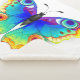Arco-íris, realista, desenhado artisticamente, borboleta pavão de cores brilhantes com asas detalhadas texturizadas sobre fundo branco. Borboleta-arco-íris.