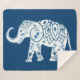 Stunning ethnic art sherpa blanket with decorative henna tattoo style elephant on dark blue background. Option to customize background color to match your decor.