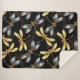 Padrão sem costura com ouro, joias, libélulas brilhantes com asas brilhantes e detalhadas sobre fundo preto. Dourada libélula.