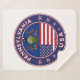 Crachá da Pensilvânia com bandeira da Pensilvânia e bandeira dos EUA cores, forma arredondada. Emblema da Pensilvânia. Selo da Pensilvânia. Coleção dos Estados Unidos.
