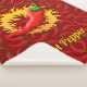 Pimenta vermelha com círculo de chama sobre fundo uniforme removível. Texto personalizado.