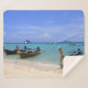Barco longo e praia tropical arenosa no Mar de Andaman, Tailândia