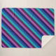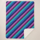 Um cobertor sherpa de grande porte que apresenta um padrão colorido design de faixas diagonais em azul legal, azul-oceano, azul marinho, roxo de ameixa e lavanda.